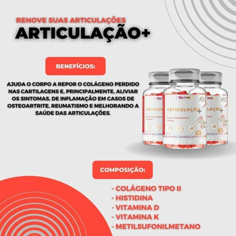 O Articulação é por sua base colágeno tipo 2, que é responsável por desinflamar e aliviar as dores em nossas articulações do corpo, e auxilia o corpo a prevenir várias doenças como (Reumatismo, Osteoporose, etc….)